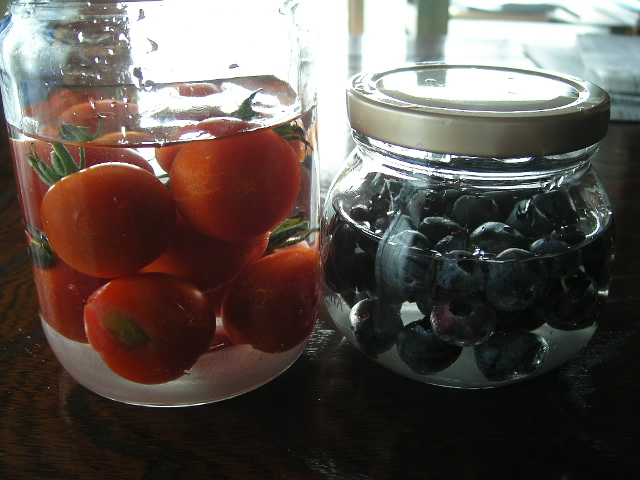 実家の畑からミニトマトとブルーベリーを拝借してきました。